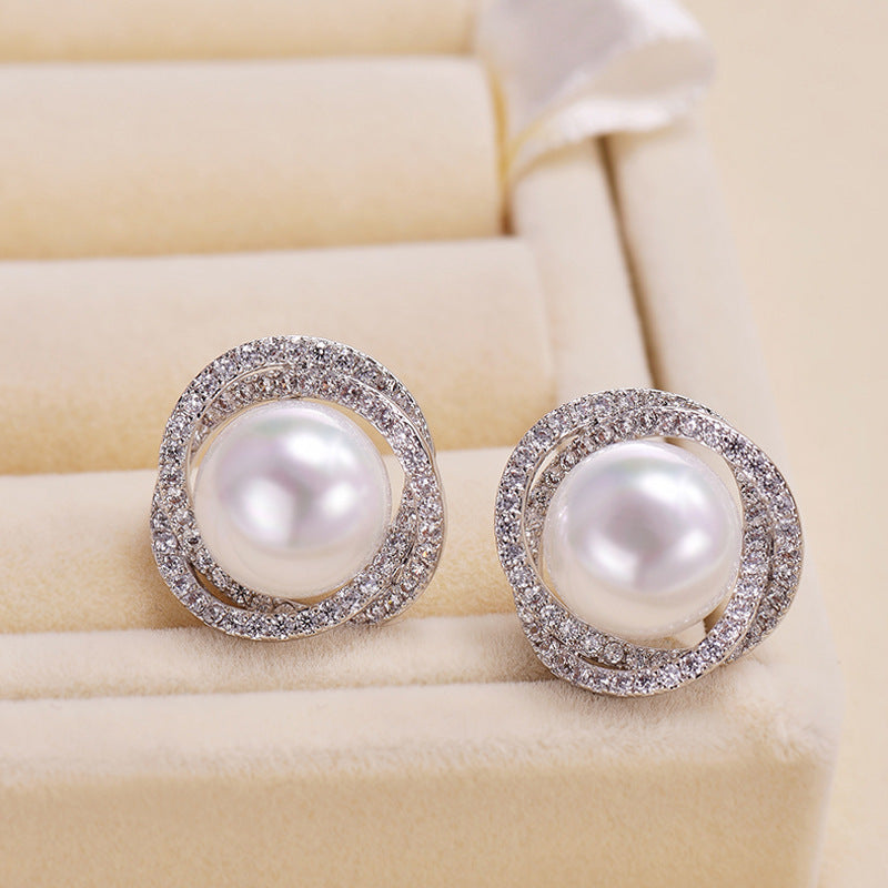 Cool girls need the Ella earrings. Made from metal and faux pearl, these circle shaped earrings have a stud fastening with butterfly backing. The faux pearl center is complemented by a textured silver frame.